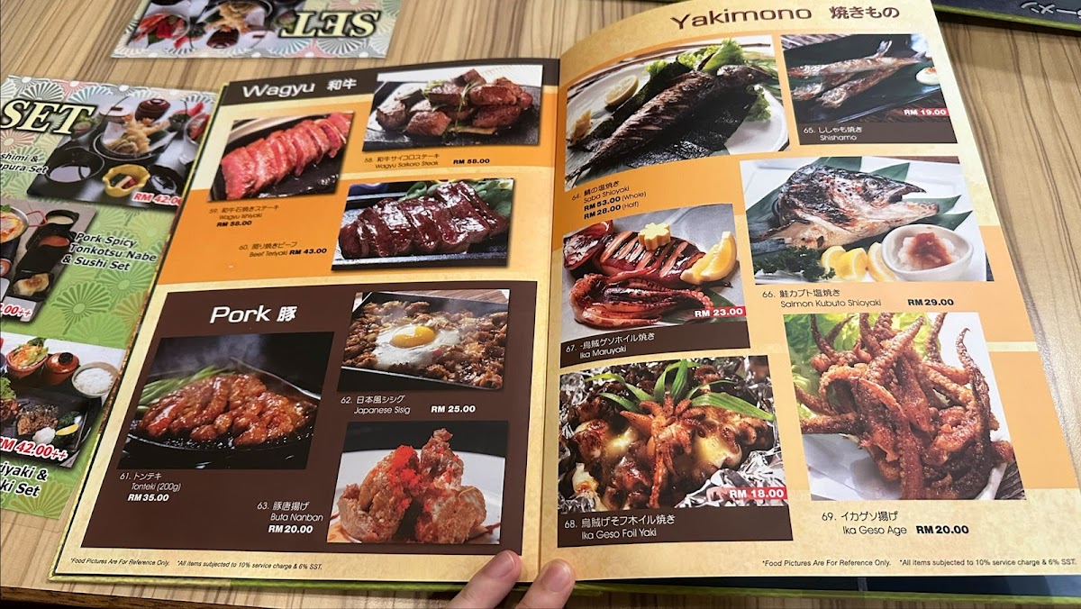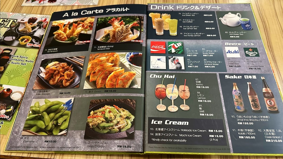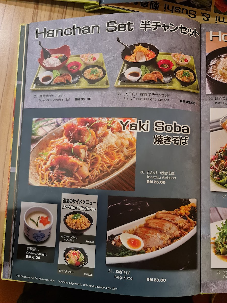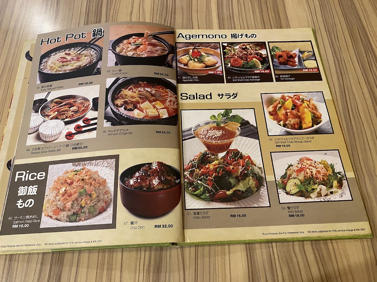 Tosaya Menu